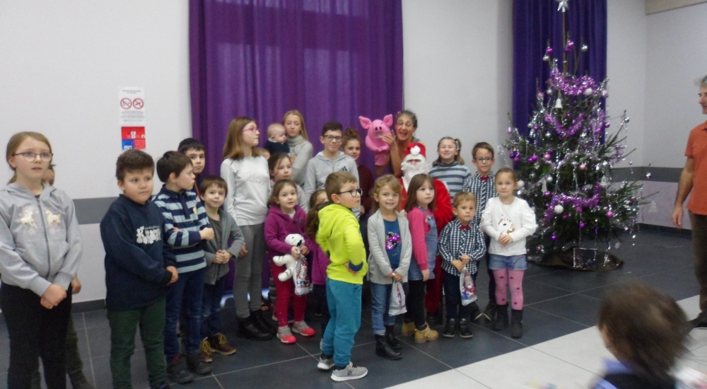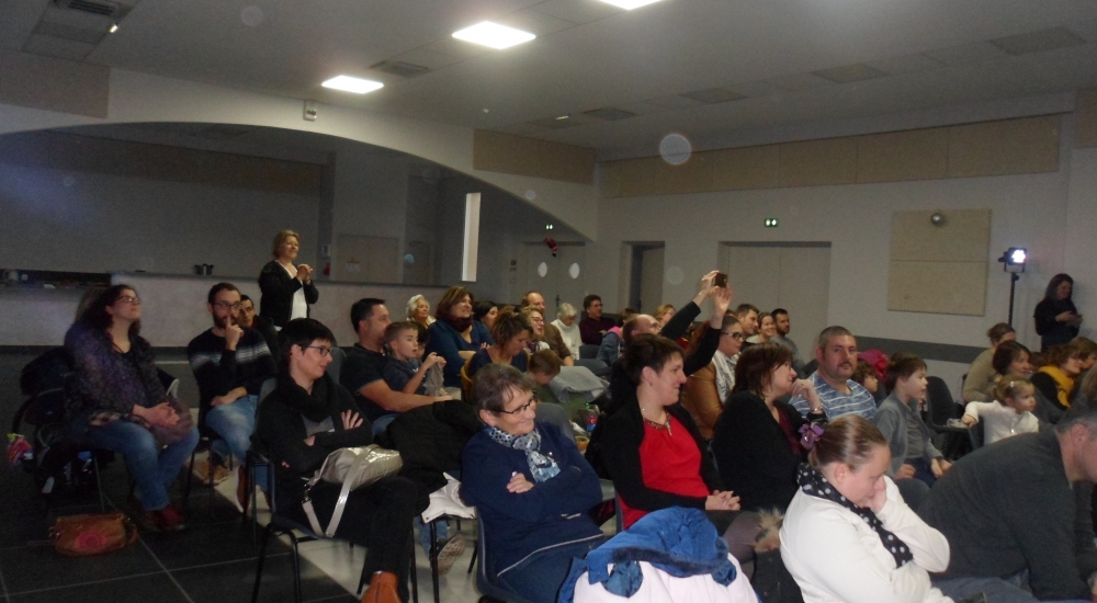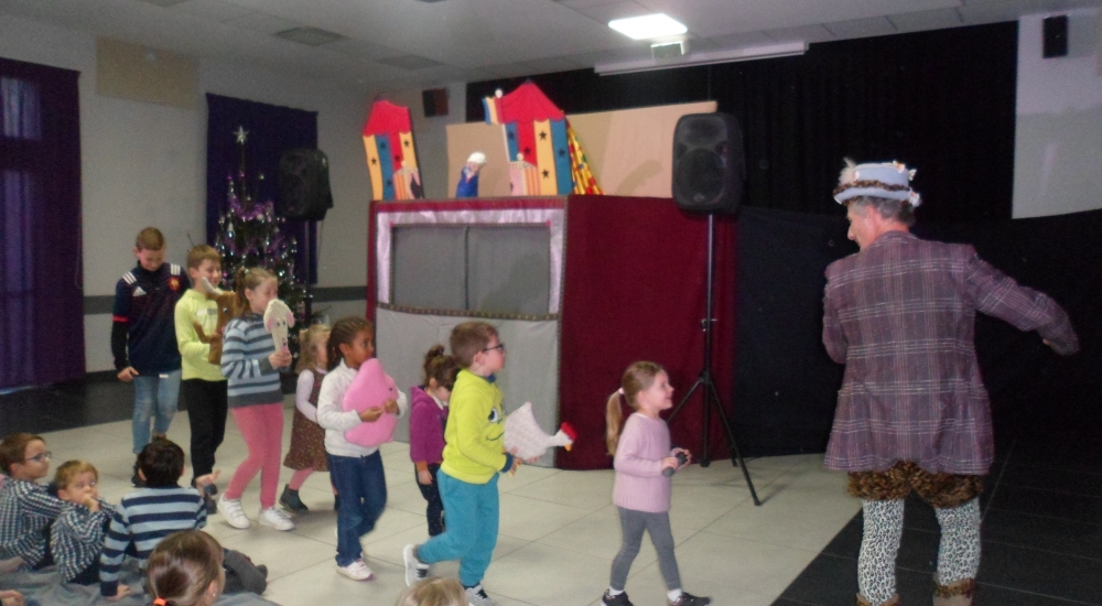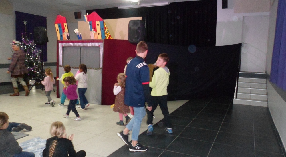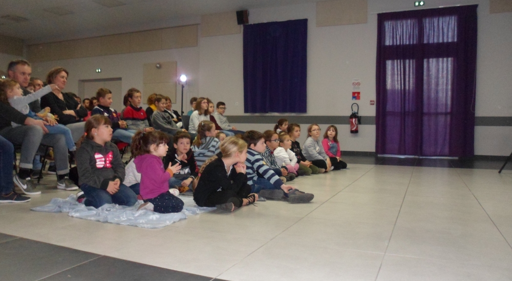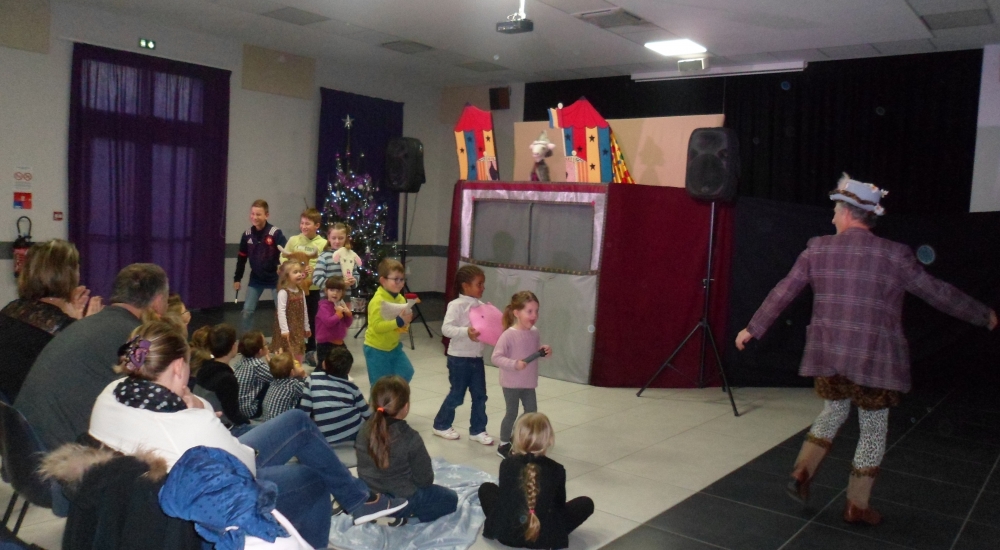 Les familles ont répondu nombreuses à l’invitation du centre communal d’action social, avec la participation du comité des fêtes pour assister au spectacle de La compagnie en LA de Saint-Pourçain-sur Sioule. Après avoir joué en 2017 « Le voyage de Pom au Pays du Petit déjeuner » les marionnettistes revenaient cette année avec « La ferme fait son cirque » contant les aventures de Zaza la poule, Victor le mouton, Anna la Vache et Chonchon le cochon qui décident de monter des numéros de cirque sous la houlette de mère Pèche, la fermière… Magicien, fildefériste, clown, et autre équilibriste… Autant de circassiens rocambolesques pour un spectacle plein d’humour, de poésie et de rebondissements. Les artistes de la compagnie furent chaleureusement remerciés pour la qualité de la représentation par des parents heureux de voir leurs bambins si captivés et volontaires quand ces derniers furent aussi inviter à monter sur scène pour participer à la fameuse parade du cirque !